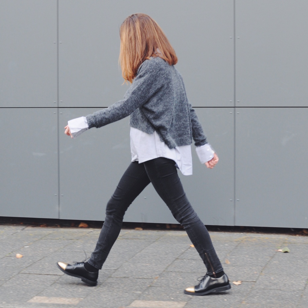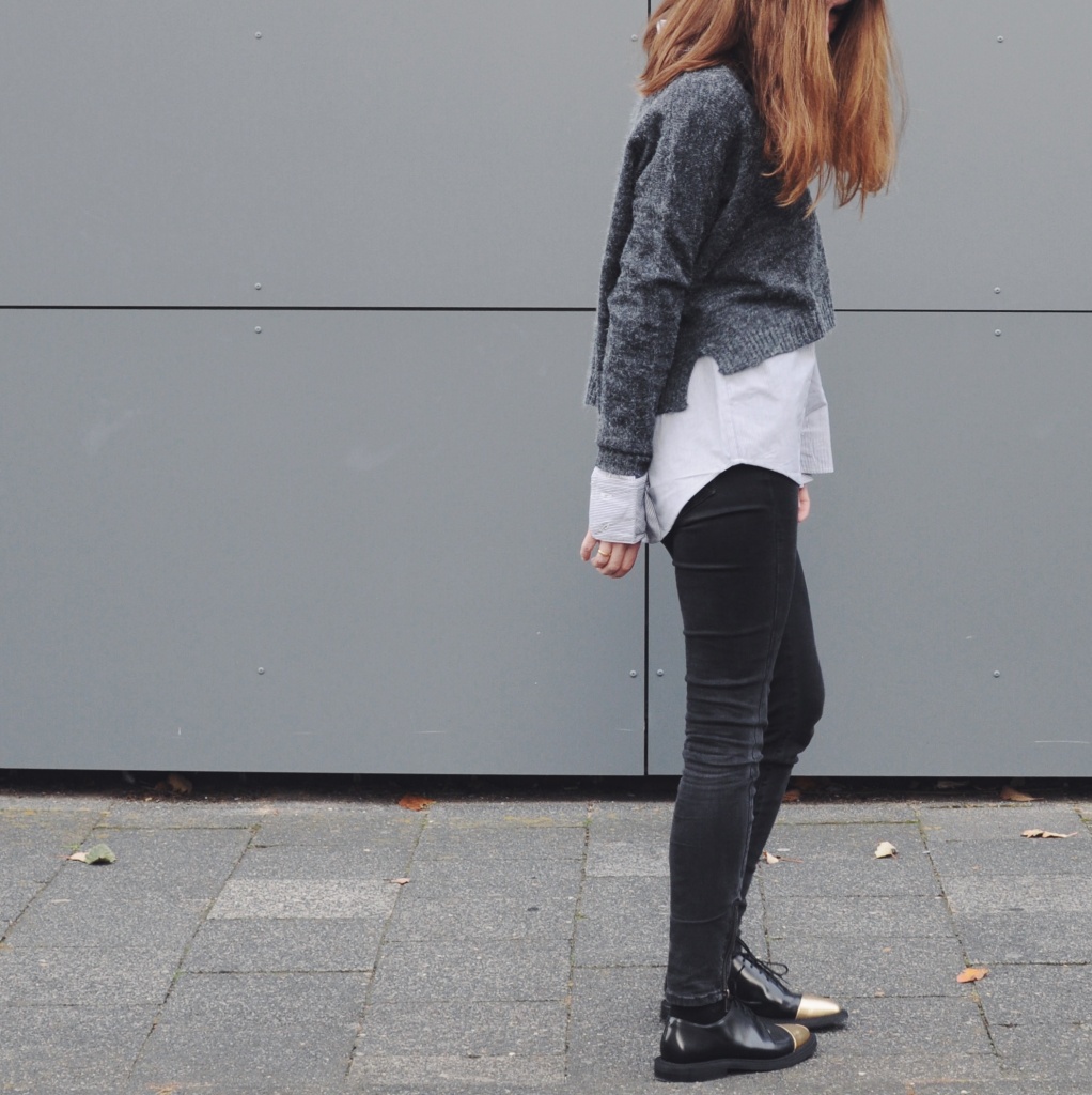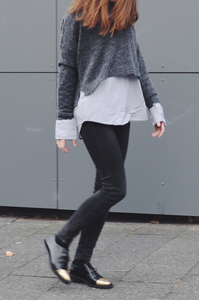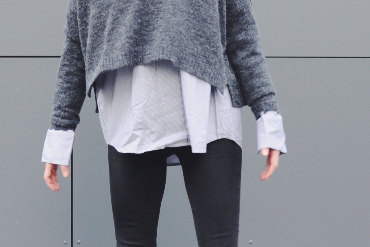 Dieser Lagenlook ist nicht neu aber immer noch top aktuell. Wir lieben diese Kombi oversize Bluse und kurzer Pullover darüber ♥