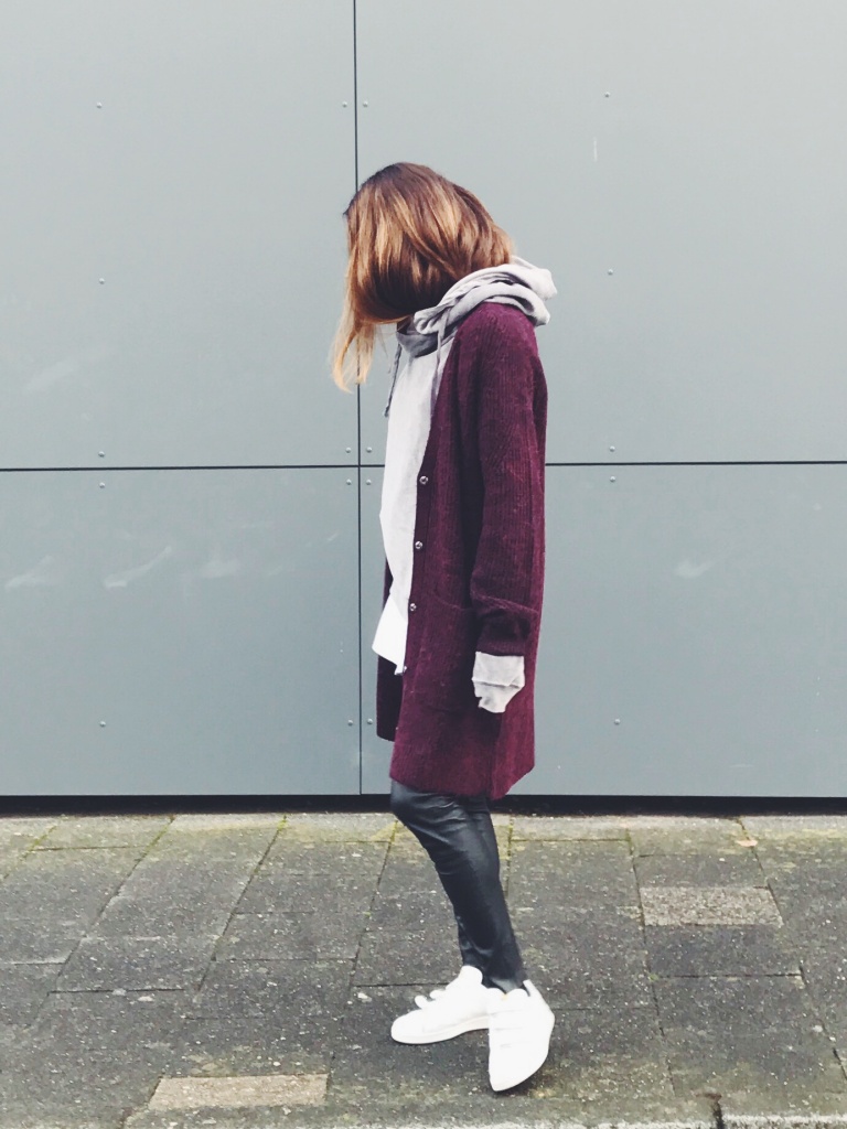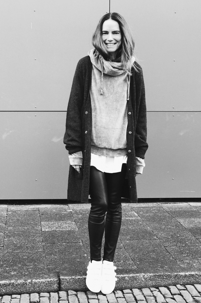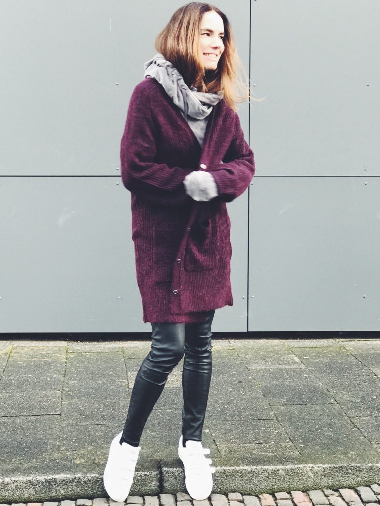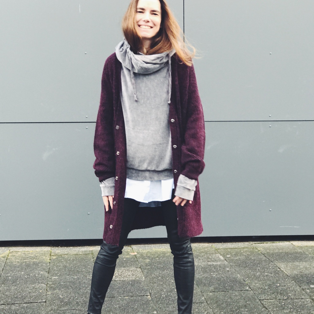 strickjacke von mbym. sweater von better rich. bluse von rockamora. und lederhose von just female.