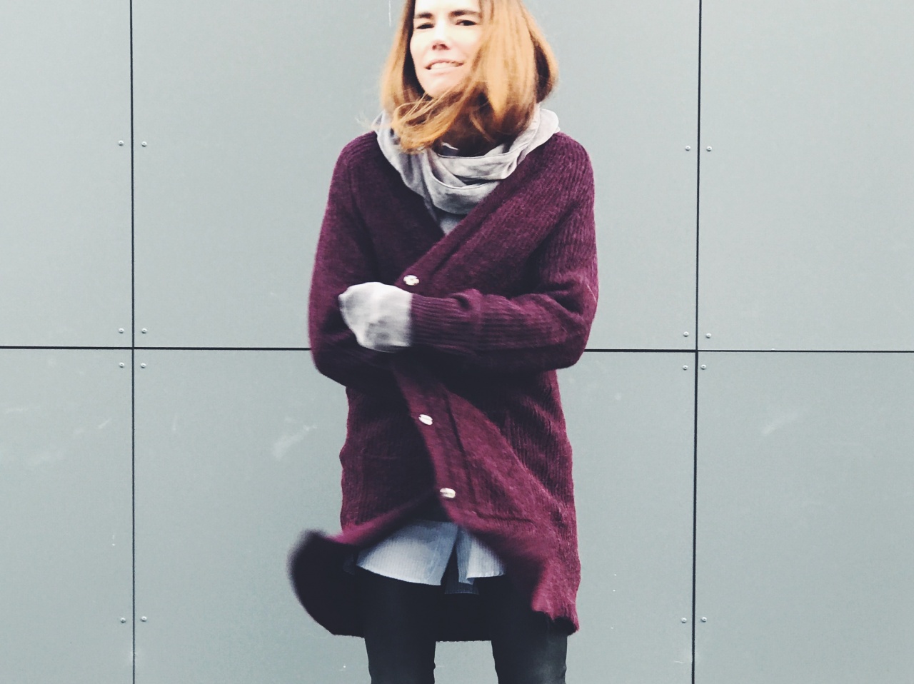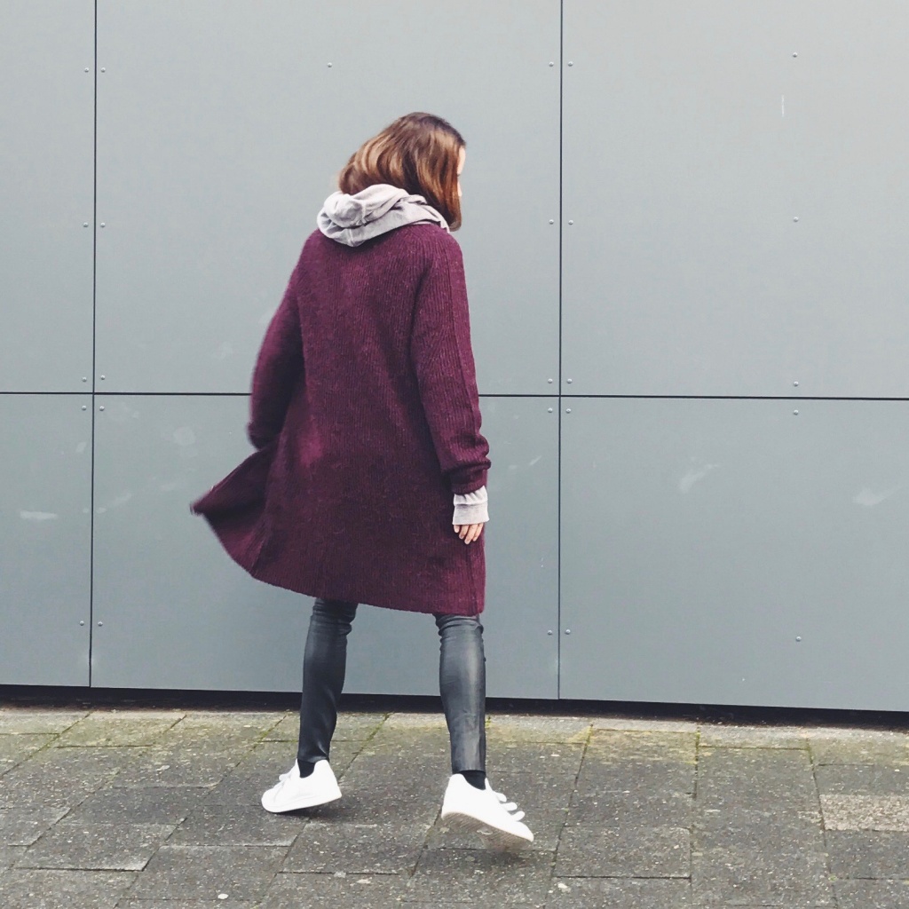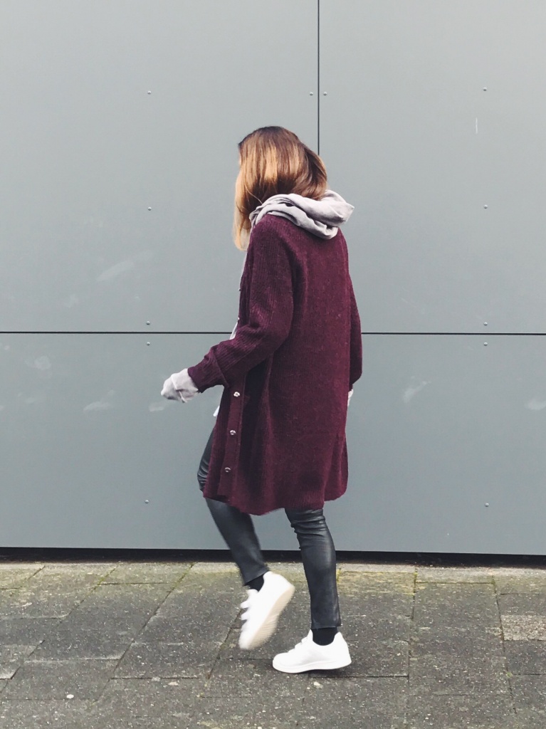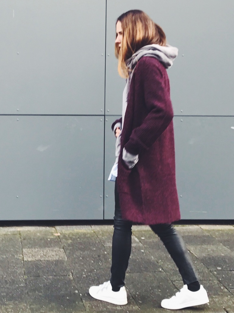 strickjacke von mbym. sweater von better rich. bluse von rockamora. und lederhose von just female.