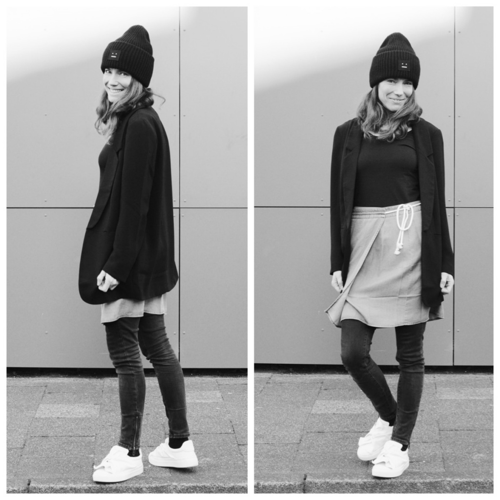 rock von yerse. blazer von selected. jeans von mbym. und schuhe von bronx.