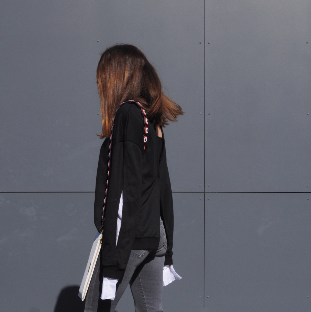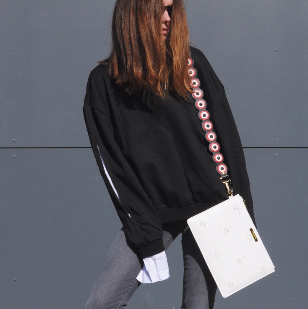 sweater von artlove. jeans von selected. tasche von katie loxton. mit strap