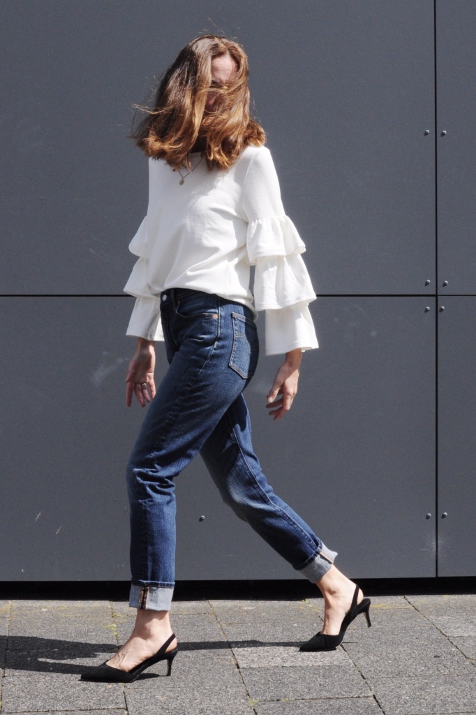 Wir lieben Rüschen und ganz besonders dieses Top von selected. Einfach anziehen und fertig ist das Outfit…was wollen wir mehr ?