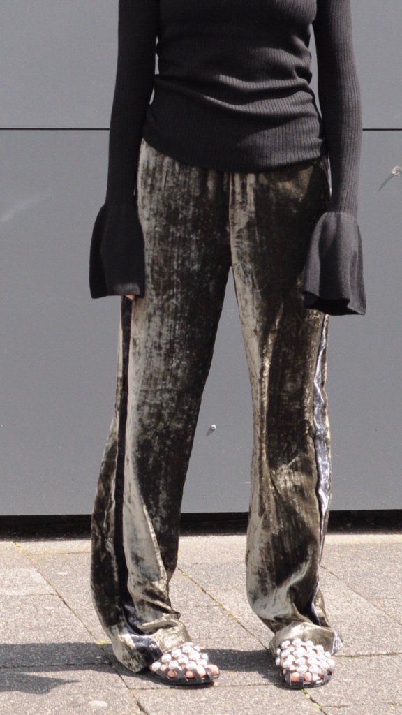 Diese Saison gibt es viele schöne Materialien die man miteinander kombinieren kann. Dabei kann der Kontrast zwischen den Stoffen gar nicht groß genug sein. Immer mehr sieht man wieder Samt, so wie diese Hose von pepe jeans. Durch das Material wirkt die eher sportlich geschnittene Hose edel und chic. WE LOVE!!