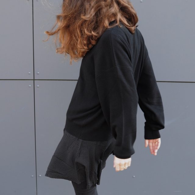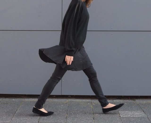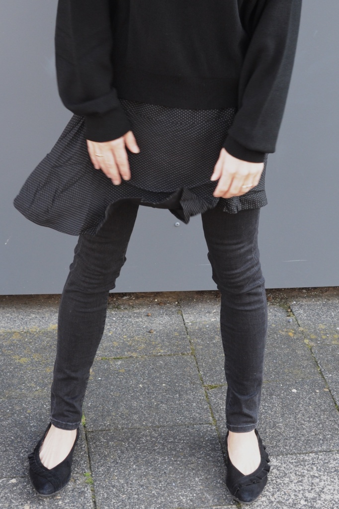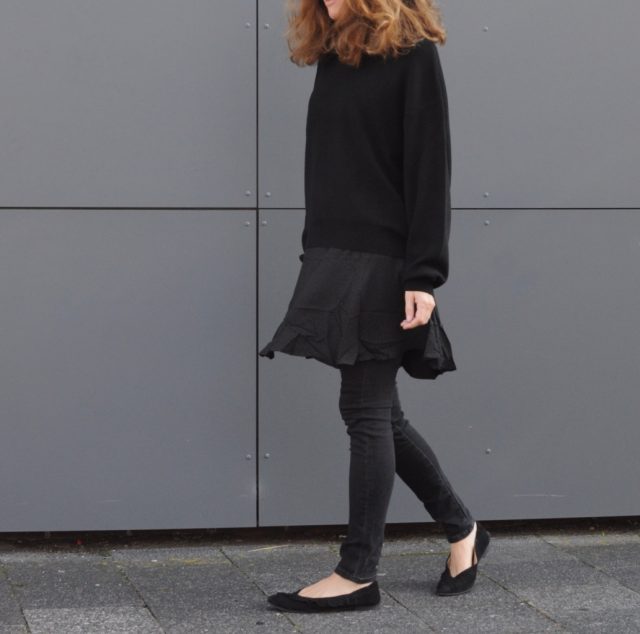 kleid von yerse. Pullover von rockamora. jeans von levis’s und schuhe von ivylee.