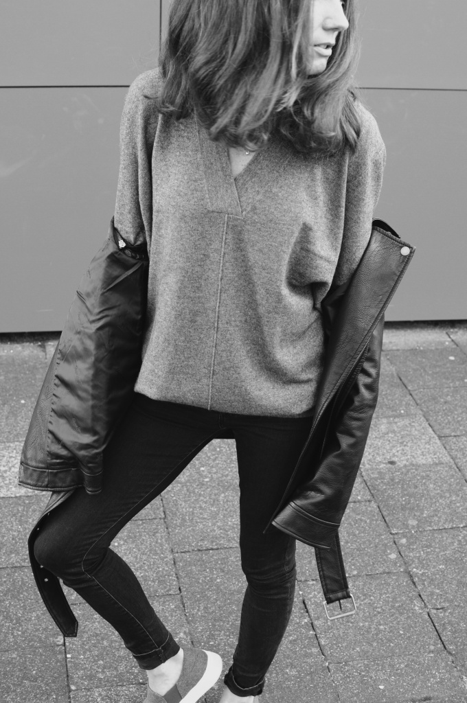 Es gibt so Tage, da fühlt man sich am wohlsten in Basics…Cashmere Pullover, Lieblingsjeans und Lederjacke.