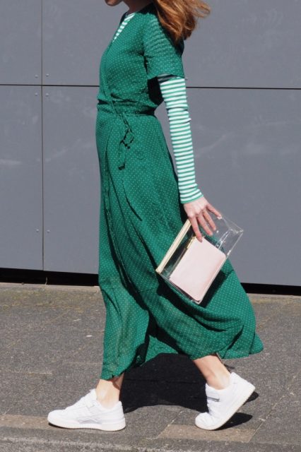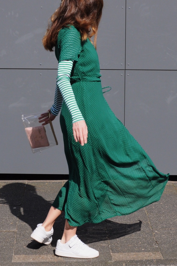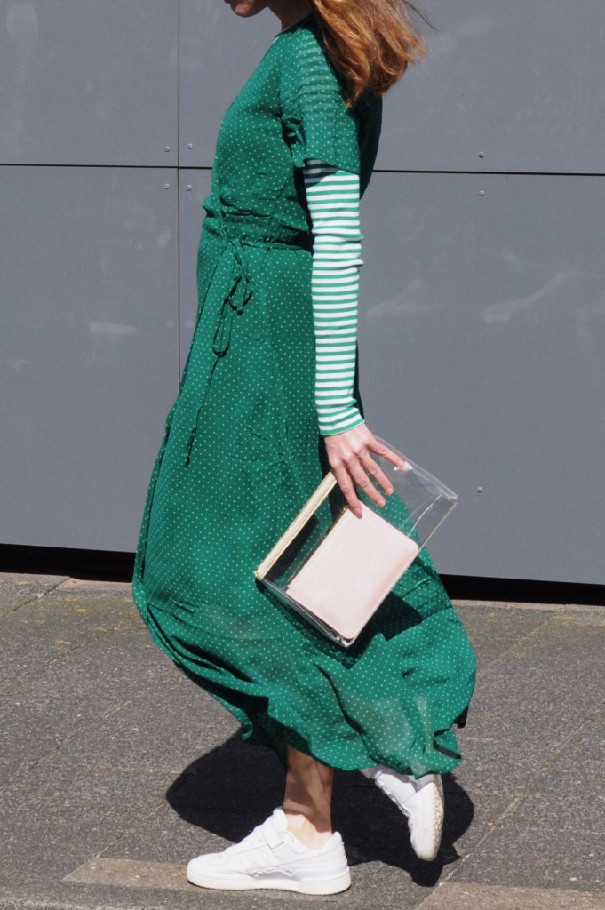 kleid von object. shirt von mads norgaard. sneaker von adidas. und tasche von katie loxton.